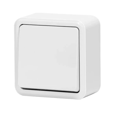 1 way and key German Surface Mount Switch in White, Any Environment. Its elegant functional design ensures effective lighting control.