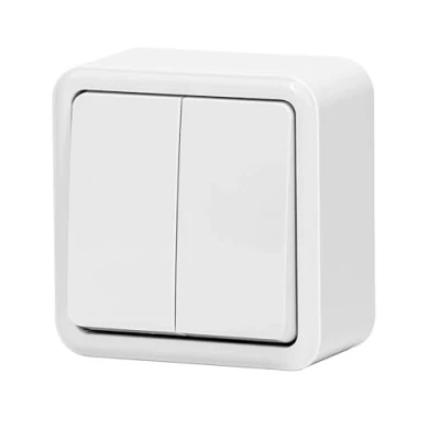 White German surface mount switch with a 1-way 2-key design, ideal for optimizing lighting control in multiple areas from a single point. White German 1-way 2-key switch, perfect for optimizing control and distribution in electrical installations, with a practical design for surface mounting. Surface mount switch designed in Germany, with 2 keys and 1 way. Its white color fits perfectly with any modern or classic decor, offering a clean and crisp appearance. Ideal for efficient lighting control in your home or office. German surface mount switch with two keys, ideal for controlling multiple lights or devices from a single point. Its white design blends seamlessly into any home decor. Surface mount switch, German, with 1-way design and 2 keys, perfect for easy control and efficient distribution of electricity in your home. Its white finish fits elegantly with any decor.