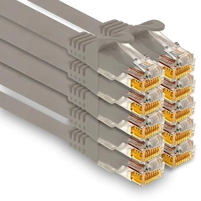 10 x 1.0m Cat7 network cable, Cat.7 Ethernet, Lan & Cat 7 patch cable for maximum internet speed connects all devices with RJ 45 plug gray