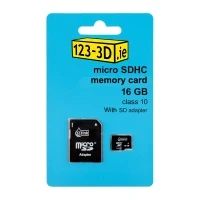 123-3D IEThanks to its high writing speed, this 123-3D Micro SDHC memory card is very suitable for video and photo cameras. The card comes with an adapter so you can easily insert the card into your computer's card reader. The memory capacity of this card is 16GB.Micro SDHC cards are suitable for devices with the Micro SDHC or Micro SDXC logo (not compatible with devices with the standard Micro SD logo).Of course this 123-3D product also comes with a 100% warranty!