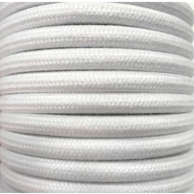 White textile cable 15 m, ideal for decorative projects and visible installations, offering a superior aesthetic finish thanks to its smooth cotton cover that blends harmoniously with any space. 15m textile cable with a plain white cotton sheath, ideal for visible installations that require an aesthetic and delicate finish. This 15 metre cable covered in plain white cotton textile is ideal for lighting projects or for adding a vintage and elegant touch to any interior space. 15m cable covered with a white cotton braid, ideal for decorative projects or visible installations that require an aesthetic and discreet finish. Renew your spaces with this elegant textile cable of 15 m in white, ideal for giving a discreet and sophisticated touch to your lamps and luminaires. Made of high quality plain cotton, ensuring durability and style.