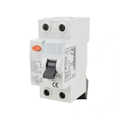 2 pole differential switch 63A 30mA, protects against electric shock and overloads in electrical installations.