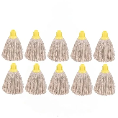 12oz mop head only (screw-fit handle available separately) Colour-coded for area-specific cleaning Rough twine yarn is suitable for a heavy tread rough surfaces Colour: Yellow Pack of 10