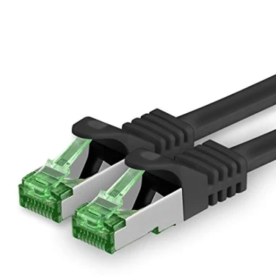 ULTRA-FAST SPEED: High transfer speeds of up to 10,000 Mbit/s for all internet speeds. Exactly what you need when gaming or online streaming Trouble-free: The Lan cable Cat 7 is an SFTP cable for low susceptibility to interference. The gold-plated contacts of the RJ45 connector prevent corrosion. HIGH QUALITY: Copper inner conductor, gold-plated contacts, LSZH compliant, solid workmanship, double shielding and a kink protection grommet. A REAL ALL-ROUNDER: The high-quality Ethernet cable is versatile and is suitable for connecting notebooks, laptops, computers, game consoles, DSL modems, switches, routers, network sockets or patch panels and for gigabit networks of 10, 100, 1000, 10000 Mbit s. HIGH COMPATIBILITY: The Cat 7 cable is backwards and forwards compatible with Cat5 Cat5e Cat6 Cat6a Cat8. Ideal for Gigabyte networks, online gaming, smart TV, smart home. READY TO USE: The network cable is pre-assembled with 2 x RJ45 connectors and can be used immediately. Plug in and get started.