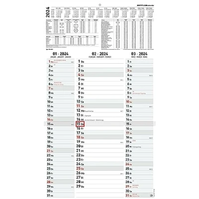 3 Month Calendar Strip Planner 2024 33 x 58.8 cm