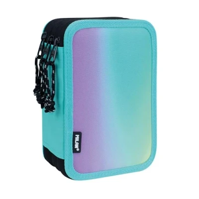 3-story pen that allows to keep school supplies always tidy and easily accessible. Sunset Series Green A combination of gradient colors inspired by the sunset, accompanied by black and white details. Zipper pulls with rope. School supplies included: 1 cream eraser 320 Sunset yellow, 1 sharpener AFILA, 1 graphite pencil HB, 3 CAPSULE pens (green, nergo and red), 1 triangular ruler 15 cm, 12 triangular pencils, 6 metallic black wood pencils, 5 fluorescent evidencers, 1 Basic scissors and 18 markers tapered tip. Ripstop fabric - lightweight and resistant to breakage and tears. It uses a special technique that weaves thick reinforcement threads at regular intervals in a crisscross pattern. Fabric composition: outer and polyester inner lining. Dimensions: 19.5 x 13 x 7.5 cm.