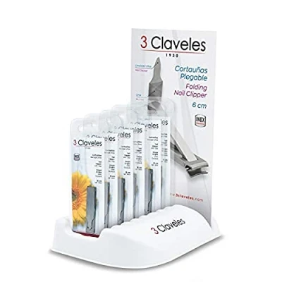 Stainless steel folding nail clipper 6 cm; exp.24 u. 3C of 3 carnations. Manicure and pedicure products for Unisex Adult 3 Claveles brand products are made with premium ingredients.