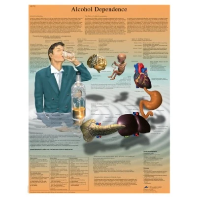 Detailed anatomy illustrations show the effects of alcohol on the organs of the human body Alcohol dependence is a serious problem and this poster can help educate people about it This thickly laminated anatomical chart is printed on premium glossy (200 g) UV resistant paper The poster comes with 2 sided lamination (75 micron) It comes in a convenient poster size 50cm x 67cm (20" x 26'') and can be written on and wiped off with non permanent markers