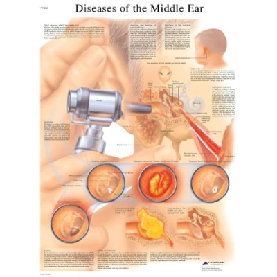 This colourful anatomical chart covers the diseases of the middle ear The poster covers topics such as changes in anatomy due to disease as well as the form and function of the middle ear This thickly laminated anatomical chart is printed on premium glossy (200 g) UV resistant paper and comes with 2 sided lamination It comes in a convenient poster size 20" x 26" and can be written on and wiped off with non permanent markers The poster's 75 micron lamination ensures the chart does not curl up at the edges and the UV treatment ensures the chart does not get a faded yellow colour over time