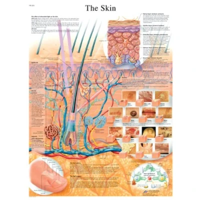 Anatomical chart Thickly laminated Printed on premium glossy (200 g) UV Resistant paper The anatomical detail of the skin is depicted in full colour on this anatomical poster The anatomy of the human skin, including all skin layers, as well as some common skin pathologies are displayed This skin poster is a great addition to any classroom or doctor's office and is a useful tool for patient education Printed on premium glossy (200g) paper This poster comes in a convenient poster size 50x67cm