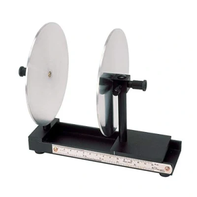 Plate capacitor to study the relationship between charge, voltage and capacitance Plate diameter: approx. 149 mm Plate spacing: 0 – 150 mm Plate area: 175 cm² Connector: 4mm safety sockets