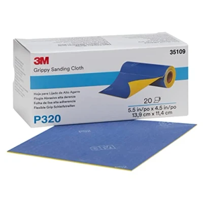 3M Grippy Sanding Cloth, 139 mm x 114 mm, P320, 35109, 20 Sheets per Roll