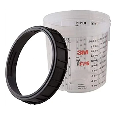 The outer cups support the inner cups for the 3M PPS paint processing system 3M PPS as a disposable complete solution for dosing, mixing, filtering and processing wet materials Processing at a constant 90 degree angle, regardless of the orientation of the part to be processed (even overhead) 70% less solvent consumption with 3M PPS than conventional flow cups (up to 90% with PPS and 3M Accuspray)