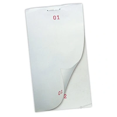 Pack of 5 food order/waiter/restaurant pads One-Ply Single Sheet Top stapled Pre-printed with ascending check number (1 - 50) Approx size - 63mm x 125mm