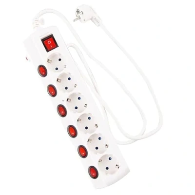 6-Outlet Multi Base with Single Switches T/TL sockets - Cable 1.5 m - Section 3x1.5 mm - 16A The main switch and 6 individual switches are bipolar and allow you to control the socket individually according to your needs, thus saving unnecessary standby power from electrical devices.