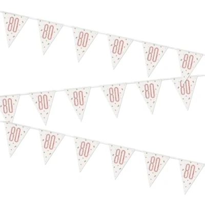 80th Birthday Bunting Banner 9ft Glitter Rose Gold