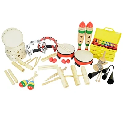 DESIGNED BY TEACHERS - The 30 Player Musical Journey Pack has been created by teachers as the ideal classroom percussion box. The pack has been divided into 5 categories, which enables teachers to create multiple parts/ensembles with ease. FREE RESOUCRES - With your journey pack purchase, you will receive 12 months of access to the A-Star Classroom, with schemes of work for both KS1 and KS2 along with a host of topic lessons, classroom activities, and how-to videos. DESIGN - Suitable for ages 3+. You can be assured that this selection of instrument meet all necessary safety requirements. CONTENTS - 4x Egg Shakers, 2x Wooden Maracas, 2x Half-moon Tambourine, 2x Guiro, 2x Cabasa, 3x Two-Tone Woodblock, 2x Small Floor Tom, 4x Hand Drum, 4x Chime Bar Sets, 3x Claves – Pairs, 2x T-Bar Woodblock, 2x Agogo Bells STORAGE - Housed in a strong heavy duty plastic storage box, enabling you to transport your instruments to different places or neatly stored away.
