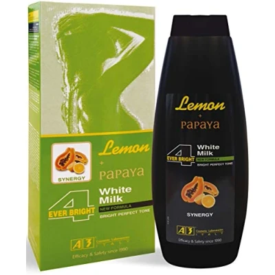 Brightening Milk With papaya with lemon scent With vitamin PP Rich in vitamins A, B and C. Counteracts acne and oily skin Repairs skin damage caused by sunlight
