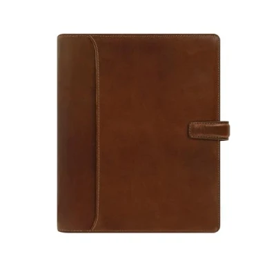Deluxe full grain buffalo leather organiser Lightly oiled burnished finish Strap closure with poppercap Cotton cream diary and inserts Page size 148mm x 210mm