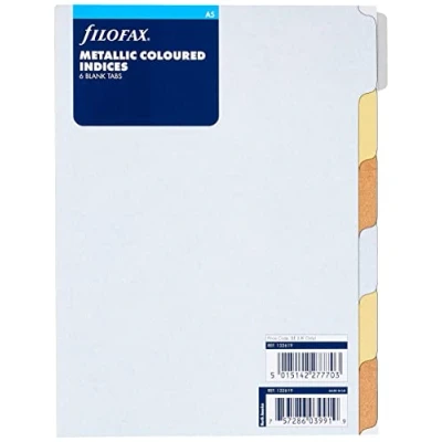 Amazon A5 Metallic blank index 6 sheets - 160gsm 3 shimmering colours Fits Filofax A5 organiser and Clipbook Paper size 156 x 210mm