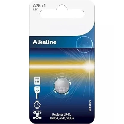 Alkaline button cell A76/01B single unit ideal for compact devices. It stands out for its durable power capacity in a small size, perfect for essential gadgets. The A76/01B alkaline button cell is compact and offers energy efficient, perfect for gadgets that require a durable source in a size suitable for small devices. A76/01B button cell battery designed to provide long-lasting power to compact devices. Its small size makes it perfect for gadgets that require energy efficiency. A76/01B Alkaline Button Cell Battery designed for compact devices requiring efficient power. Ideal for gadgets that need long-lasting performance in a small footprint. Single unit A76/01B Alkaline button cell designed to deliver long-lasting power in compact devices. Ideal for gadgets that require power in a small footprint.