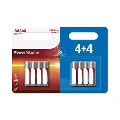 AAA 1.5V alkaline batteries (8 pack, pack of 4 + 4) ideal for high energy consumption devices, offer superior performance and exceptional durability in everyday use.