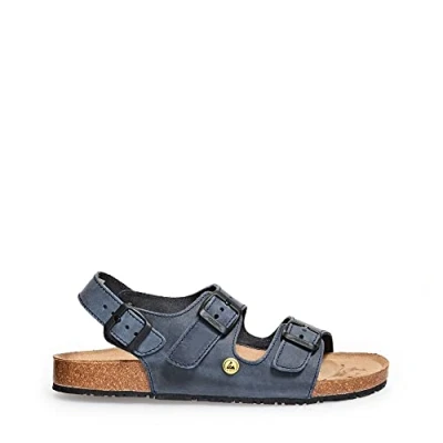 Velour Blue Non-slip rubber outsole Leather-covered cork footbed ESD compliant according to DIN EN 61340 Fixed heel strap, adjustable