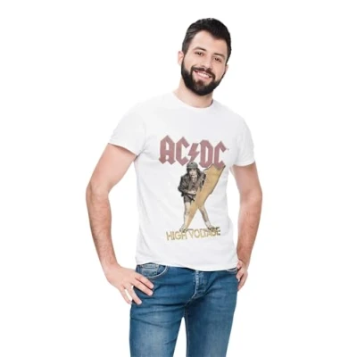 AC/DC High Voltage MEACDCRTS053 Men's T-Shirt, White, Size 3XL 100% official licensed products Machine wash at 30°C inside out