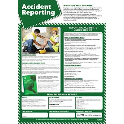 Accident Reporting Health and Safety Posters Laminated Gloss Paper 850mm x 594mm (A1) Office Commercial Wall Charts Education by Daydream