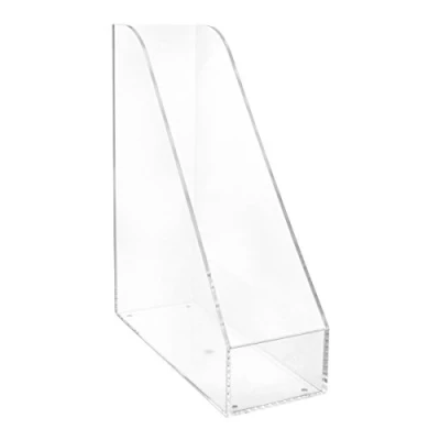 Creates order: storage of papers, pads, magazines, catalogues up to DIN A4 The magazine rack is open at the front for convenient removal. crystal clear, high-quality acrylic blends harmoniously into the desk environment. Size (W x H x D): 98 x 307 x 263 mm. . The sophisticated manufacturing process ensures a long service life and high stability. Material thickness: 0.4 cm