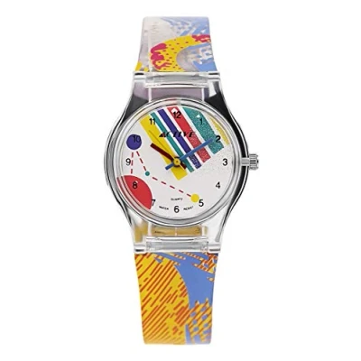 Great design: Analogue Child's watch with a quartz movement Premium quality: By using high-quality materials ✓ Glass: Plastic glass ✓ Case material: Plastic ✓ Bracelet material: Plastic ✓ Waterproof: 3 bars Compact size: ✓ Case diameter: 28 mm, ✓ Height: 10 mm, ✓ Bracelet: Length: 17 cm, Width: 16 mm. Due to this great size, the watch is absolutely for everyday use✓ Weight: 13 Gram Color: The classic Color makes the watch suitable for daily use - Case Color: Without, Dial Color: Multicolour, Bracelet Color: Multicolour Includes: A beautiful, original Active giftbox. Also Includes a manual, service card and a 2-year warranty
