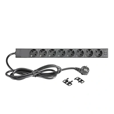 Adam Hall Cables 87471 USB 19" Power Strip 1U 8 Way with Switch & 2 x