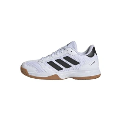 You'll own the court in these juniors' adidas indoor shoes. Whether you're playing volleyball or handball, the Ligra 8 are built to keep up. The breathable mesh upper is reinforced with synthetic overlays for added durability. A supportive midsole cushions your every move while the rubber outsole provides the grip you need for quick cuts and sudden stops. This product features at least 20% recycled materials. By reusing materials that have already been created, we help to reduce waste and our reliance on finite resources and reduce the footprint of the products we make. Sale | Upper material: textile/synthetics/Lining: textile/Sole: natural rubber/Insole: textile | Sale order at Zalando.ie! Size: 2. Color: Cloud white core black cloud white. Pattern: striped. Age group: Kids.
