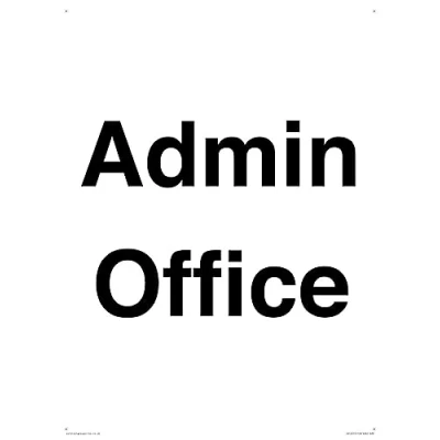 No Symbol This sign is made from plastic semi-rigid 1mm Comes with4mm Corner Holes. 1mm thin plastic sign, can be screwed, stuck with adhesive, or attached with cable ties. Not suitable for hanging. A3 portrait Sign Text: Admin Office