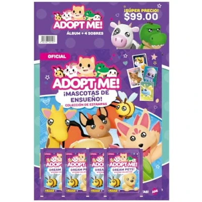 Immerse yourself in the magical universe of Roblox Adopt Me; with this unique collection that will delight fans and collectors This pack to start the collection consists of 2 packs of 5 stickers (or 10 stickers) and 1 limited edition card No. 2 With 128 basic stickers and 48 specials featuring your favorite pets, iconic characters and iconic locations from the game, as well as limited-edition cards, this collection promises total immersion in your virtual adventure With 128 basic stickers and 48 specials featuring your favorite pets, iconic characters and iconic locations from the game, as well as limited-edition cards, this collection promises total immersion in your virtual adventure