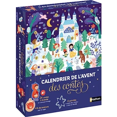 A traditional advent calendar around tales: Every day, surprises and a beautiful story around traditional tales 24 tales to listen to while waiting for Christmas: immersive audio stories to listen to every day 4 activities to share with the family in the kitchen: recipes for Christmas cakes and shortbread 24 decorations for your Christmas tree, Manufacturer: Nathan