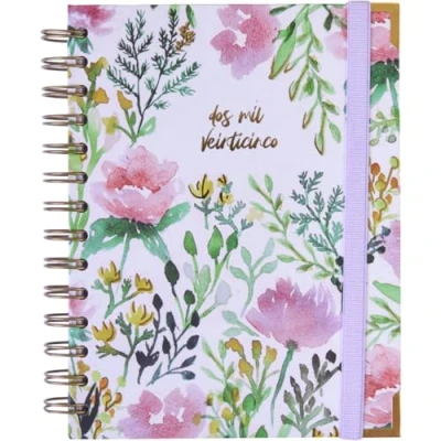 2025 ANNUAL PLANNER: Perfectly organize every moment of your routine with this 2025 agenda Camille annual planner! WEEKLY VIEW: Annual planner in a weekly view format. Monday to Wednesday on one page and Thursday to Sunday on another. Contains lines for hourly planning and is decorated with a beautiful watercolor floral design. Additionally, the beginning of each month features special quotes to help you start strong. A6 SIZE: Lightweight and super easy to carry and store anywhere. Its dimensions of 13.5 x 18 cm are ideal for keeping it in your purse, backpack, or wherever you like. DESIGNED TO HELP YOU ACHIEVE YOUR GOALS: Featuring essential sections like expectations, planners, events, passwords, sleep hours, goals, habits, and everything you need to stay on track for 2025. 8 STICKER PAGES: Make your day more fun and intuitive with 8 pages of stickers. Perfect for special occasions, travel, reminders, breaks, sports, and much more. BILINGUAL: All content is available in both Spanish and English. A planner for everyone, no matter where you are. EVERY DETAIL MAKES IT UNIQUE: High-quality thick paper (100 gsm), hardcover with the year embossed in gold, double golden wire-o binding, elastic closure band, two ribbon bookmarks, monthly index tabs, and a document pocket. BEAUTIFUL ILLUSTRATIONS: Watercolor illustrations are a must. New designs to decorate each page of your day.