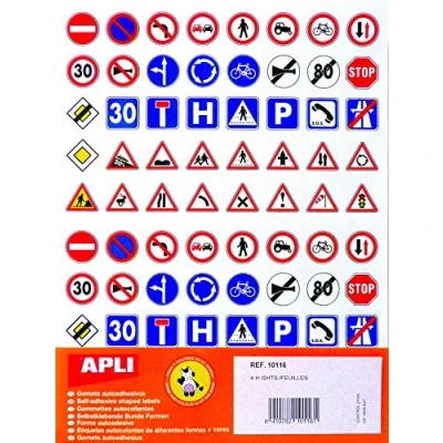Bag with four sheets with 80 stickers road traffic regulations a total of 320 stickers, 40 different signs, a real teaching tool that takes a playful approach to an important theme Road traffic regulations playful and educational, these stickers allow children to learn the different signs of the road traffic regulations. Flattened decals complies with the strictest standards for quality and safety manufactured in compliance with the standards en-71 Water-based adhesive Without solvents 100% recyclable materials. Agipa sticker traffic laws