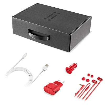 To minimise the impact of the plastic, eliminate the packaging of each product and include them in a handy gift box. Enjoy music everywhere: The JAZZ flat cable in-ear headphones are characterised by the in-ear system and thus prevent any kind of kinks. It has a microphone with multi-function button and silicone adapter in three different sizes. The aluminium finish makes this product elegant and stylish. Compatible with all smartphone models Red Passion: this kit wrestles the eye on those who always want to have a red touch in their own life. Box contents: 1 x wall charger, 1 x car charger, 1 x micro USB cable, 1 x headset with microphone
