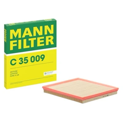 MANN-FILTER Air filter C 3509, dimensions (mm): H = 35, A = 342, B = 301, premium filter in original equipment quality High-quality MANN-FILTER air filter for clean intake air - optimal protection for engine, air mass sensor and other sensitive components. They meet the requirements of modern engine technology Highest dirt absorption capacity and dirt separation efficiency, low flow resistance and high wrinkle stability ensure functional safety throughout the entire maintenance interval Find the right filter: replacement part via the selection of make, model, vehicle type and engine in the upper area or via the key numbers (HSN/TSN) from the vehicle documents MANN-FILTER Products meet all the requirements of the EU REACH regulation to ensure health and environmental protection in processes of development, manufacturing, use and disposal
