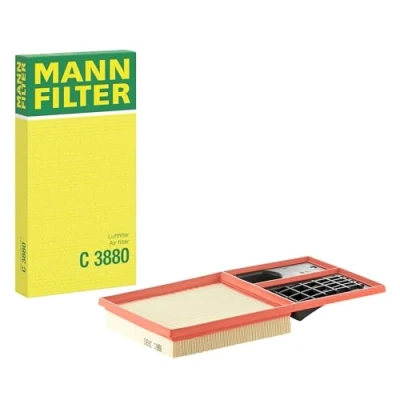 MANN-FILTER Air filter C 3880 / dimensions (mm): H = 42; A = 375; B = 192 / premium filter in original equipment quality High-quality MANN-FILTER air filter for clean intake air - optimal protection for engine, air mass sensor and other sensitive components. They meet the requirements of modern engine technology Highest dirt absorption capacity and dirt separation efficiency, low flow resistance and high wrinkle stability ensure functional safety throughout the entire maintenance interval Find the right filter: replacement part via the selection of make, model, vehicle type and engine in the upper area or via the key numbers (HSN/TSN) from the vehicle documents MANN-FILTER Products meet all the requirements of the EU REACH regulation to ensure health and environmental protection in processes of development, manufacturing, use and disposal