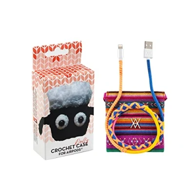 Airpod Crochet Dolly Case Pack + USB Lightning Data Cable Salmon Thread