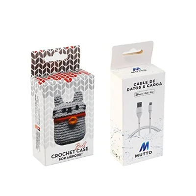 Airpods Crochet Bill Case Pack + USB Lightning Data Cable MFI