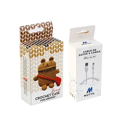 Airpods Crochet Brad Case Pack + USB Lightning Data Cable MFI