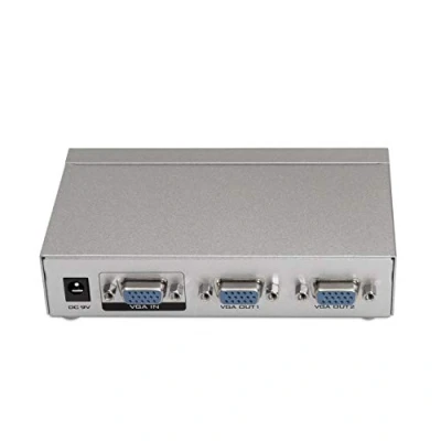 SVGA SPLITTER FOR 2 monitors with power supply, Shell Metal Construction The 2 ports SVGA Splitter allows a single VGA source to display on two displays simultaneously. The splitter supports up to 250 MHz of bandwidth and features a built-in signal amplification circuit for viewing images up to 65 m power supply. Allows you to connect in daisy chain port input signal: Female signal output port: Female (SVGA cables not included) RoHS regulations: function test: 100% tested