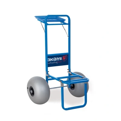 Akami Deluxe Beach Trolley - Dimensions: 51×36×108cm - Wheel dimensions: 20×30cm - Weight: 7kg - Aluminum frame - Foldable design - Easy to use - Easy to transport - Especially for the beach - With foldable tray Measuring 51×36×108cm, the Akami Deluxe Beach Trolley is an ideal companion for beach anglers. Its light weight of 7kg, foldable design and durable aluminum frame make it easy to handle and convenient to store between fishing trips. Specifically designed for beach use, the trolley offers smooth mobility on sandy surfaces. The addition of a fold-out tray enhances functionality, allowing anglers to transport their supplies in an organized fashion. In short, the Akami Deluxe Beach Trolley provides a smart and convenient solution for anglers looking to efficiently transport their gear along the shoreline.