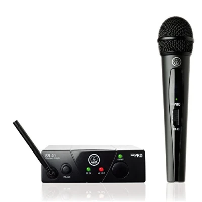 Complete wireless system including receiver and handheld microphone Operates on UK license free channel 70 (864.850) Up to 30 hours continuous use from a single AA battery True plug and play for ease of use World reknown AKG reliability and sound