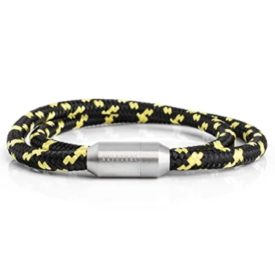 Handmade: high-quality Akitsune sailing rope bracelet with magnetic capsule clasp. The nylon strap has a diameter of 5 mm and a total length of 41 cm. Elegant and versatile: this classic, maritime bracelet for women and men is an absolute must-have for any jewellery collection. Available in different colours, the bracelet is a beautiful accessory that will complement any wardrobe. Akitsune works sustainably. Our focus is on durable, timeless and stylish products. These are already climate-neutral by compensation via our partners. We are constantly working to further optimise production and organisation to make our products as climate-friendly and environmentally friendly as possible. Our lovingly designed minimalist design stands for individuality and elegance. The perfect companion to complete your outfit. 🎁 THE PERFECT GIFT: Are you looking for a special and personal gift? This bracelet comes in a beautiful jewellery box. Whether for your wife, girlfriend, sister, mum or daughter or your husband, boyfriend or brother; for birthday, anniversary, wedding anniversary, Valentine's Day, Mother's Day, Christmas or Easter. This beautiful piece of jewellery is a special gift and is guaranteed to provide positive surprises! Available in 4 sizes: 37 cm - 43 cm total length to choose from. Measure your wrist circumference, add +1.50 cm for a normal/tight fit or +2.00/2.50 cm for a relaxed fit and compare the value with the bracelet length divided by 2 (as double wrapped). For example, your wrist measures 17 cm - you add 1.50 cm (= 18.50 cm) and take the value twice = so you choose the bracelet with a total length of 37 cm.
