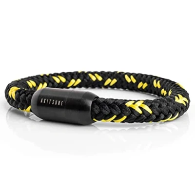 Handmade: high-quality Akitsune sailing rope bracelet with magnetic stainless steel clasp - matt. The multi-coloured nylon strap has a diameter of 8 mm and is made by hand. Elegant and versatile: this classic, maritime bracelet for women and men is an absolute must-have for any jewellery collection. Available in different colours, the bracelet is a beautiful accessory that will complement any wardrobe. Akitsune works sustainably. Our focus is on durable, timeless and stylish products. These are already climate-neutral by compensation via our partners. We are constantly working to further optimise production and organisation to make our products as climate-friendly and environmentally friendly as possible. Our lovingly designed minimalist design stands for individuality and elegance. The perfect companion to complete your outfit. THE PERFECT GIFT: Are you looking for a special and personal gift? This bracelet comes in a beautiful jewellery box. Whether for your wife, girlfriend, sister, mum or daughter or your husband, boyfriend or brother; for birthday, anniversary, wedding anniversary, Valentine's Day, Mother's Day, Christmas or Easter. This beautiful piece of jewellery is a special gift and is guaranteed to provide positive surprises! Available in 6 sizes: 18 cm - 23 cm total length to choose from. You can find your suitable size using the size chart in the pictures or measure your wrist circumference and add +1.5 cm for a normal/tight fit or +2/2.5 cm for a relaxed fit. Please avoid contact with water for a long service life of the bracelet.