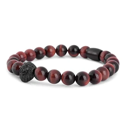 QUALITY & RISK FREE PURCHASE Unique high quality Akitsune bracelet with natural stone elements and lion head. The diameter of the beads is 8 mm. If you don't like it, you have the option to return free of charge. Elegant and versatile: this classic bracelet for women and men is an absolute must-have for any jewellery collection. Available in silver, matte black, gold and rose gold, the bracelet is a beautiful accessory that will complement any wardrobe. Akitsune works sustainably. Our focus is on durable, timeless and stylish products. These are already climate-neutral by compensation via our partners. We are constantly working to further optimise production and organisation to make our products as climate-friendly and environmentally friendly as possible. Our lovingly designed minimalist design stands for individuality and elegance. The perfect companion to complete your outfit. The perfect gift: Looking for a special and personal gift? This bracelet comes in a beautiful jewellery box. Whether for your wife, girlfriend, sister, mum or daughter or your husband, boyfriend or brother; for birthday, anniversary, wedding anniversary, Valentine's Day, Mother's Day, Christmas or Easter. This beautiful piece of jewellery is a special gift and is guaranteed to provide positive surprises! Choice of sizes: available in 2 sizes: 18 cm and 20 cm total length are available. You can find your suitable size using the size chart in the pictures or measure your wrist circumference and add +1/1.5 cm for a normal/tight fit or +1.5/2 cm for a relaxed fit. As the bracelet is elastic, it can be flexibly adjusted to your wrist size, so that, for example, bracelet size 20 cm also fits well with a wrist circumference of 20 cm.